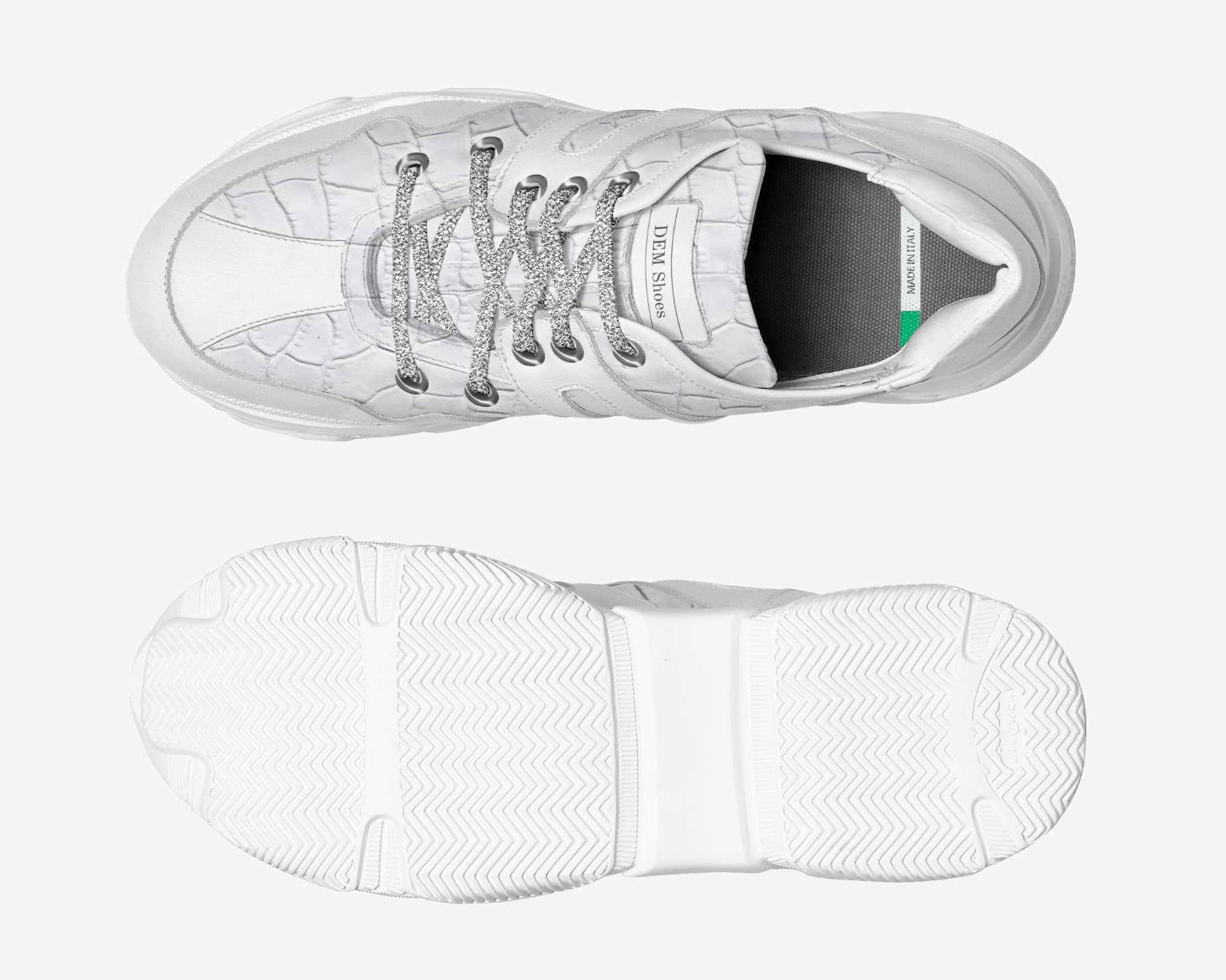 Elevate your style quotient with our Italian White Snake Skin Thick Sole Sneakers. This fashion-forward active sneaker is impeccably designed with a striking White Snake Skin, giving you a definitive style edge while ensuring your comfort with its thick, wide sole. Crafted in the heart of Italy with premium quality leather, these sneakers are more than just footwear, they're a statement. The wide sole offers enhanced stability during active pursuits, and the snake skin texture gives a luxe touch to your everyday style. Each pair is attentively crafted, embodying the elegance and flair of Italian design. Experience the blend of comfort and high fashion with these standout sneakers.